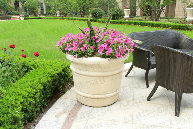 九龍星園林古建打造具有觀賞價值的石材花缽