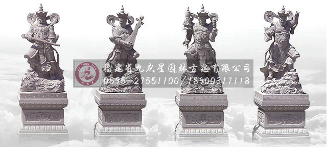 石雕四大天王通常被佛教視為四大門庭護法神將,他們分別是南方增長天王、東方持國天王、西方廣目天王、北方多聞天王。