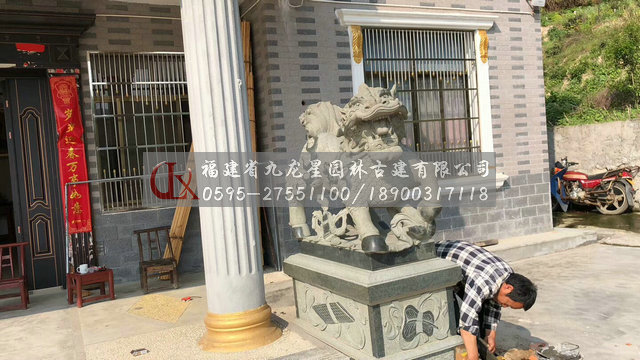 麒麟造型中石刻麒麟多在建筑、皇家建筑里出現,其體型巨大,多以威武雄健之態出現。這說明,麒麟造型的比例尺寸大小是與特定的環境、風俗、情感相聯系的。石雕麒麟的大也可以解釋為大氣、圣威、權利,具有震懾的作用。石雕麒麟的造型遵循著傳統文化審美的習慣,麒麟的造型特征說明其造物意象充滿了對美好與吉祥的期望。石雕麒麟的整個造型集龍頭、鹿角、獅眼、虎背、熊腰、蛇鱗、馬蹄、豬尾于一身,另外使用添加手法在下頜處加有長長的胡須,又添加翅膀,這樣,麒麟可以奔跑,可以飛翔,威武之勢讓人可望不可及。麒麟體現了古人對現實世界的主觀理想與造物的主動性,其和龍、鳳一樣成了我國傳統民族精神的象征。還有,石雕麒麟的擺放一般是成雙成對出現的,主要因為其造型講究碩大豐滿,還注重陰陽相守,忌諱殘缺不全、形單影只,其中寄托了人們“天人和諧”的精神追求,內涵獨特而豐富。
